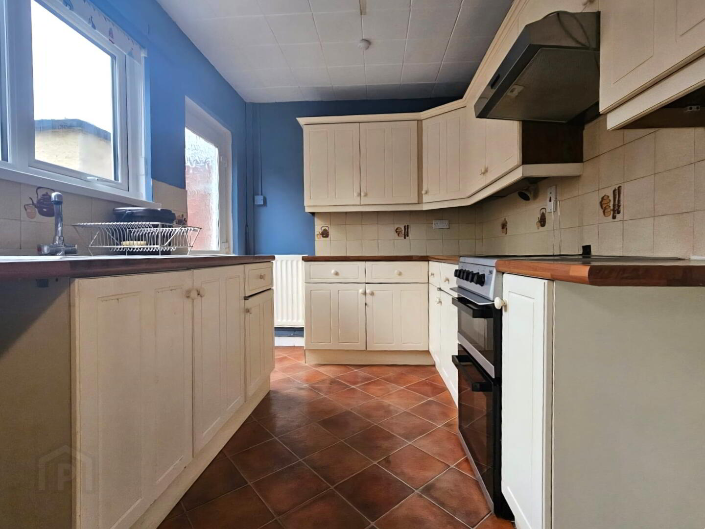 - Cream fitted kitchen