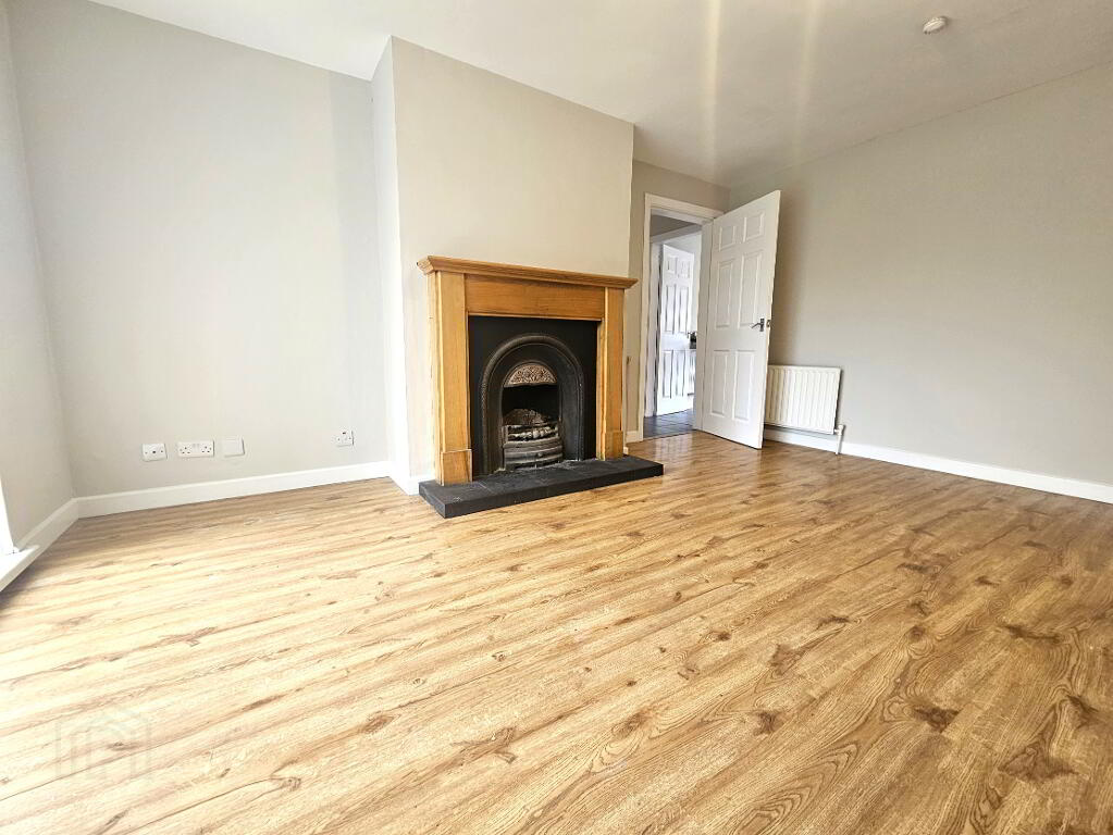 Laminate wood flooring, feature fireplace with oak effect surround, cast iron insert & tiled hearth, radiator