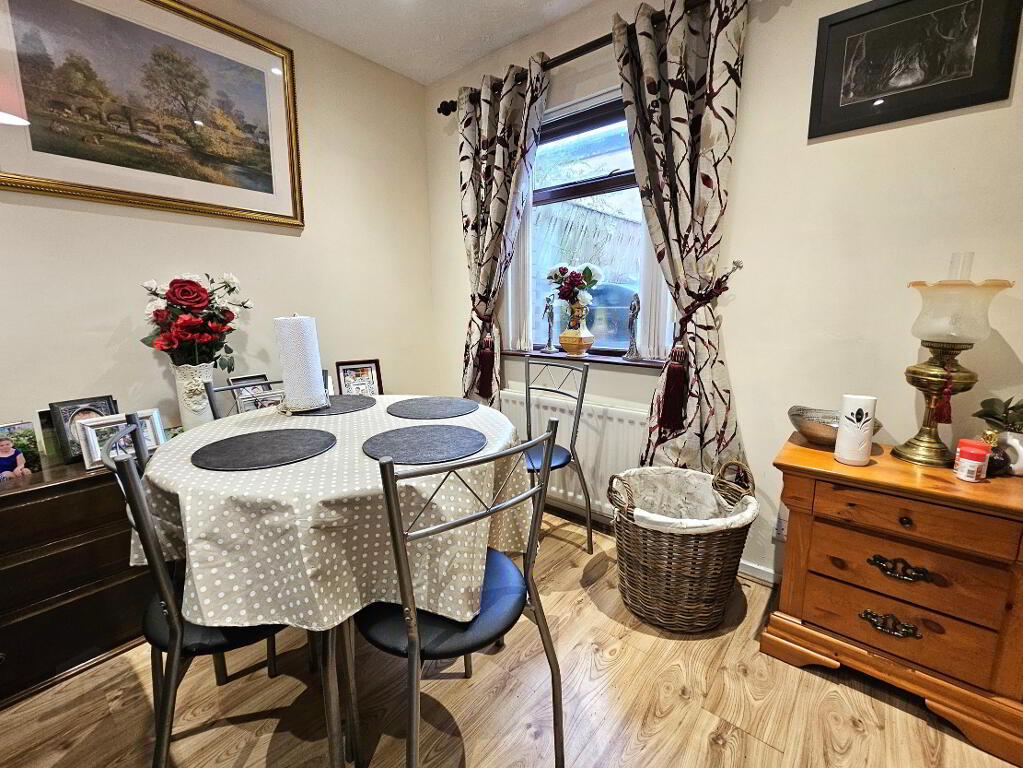 - Lounge with laminate flooring & open fire with all night burner/dampener